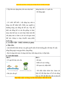 - Rèn kĩ năng tính toán, kĩ năng trình bày, kh năng t ả duy và l ư p l ậ u n. ậ b. Cách ti n h ế ành - GV cho HS c m ầ 2 đồ v t ậ ; 1 tay c m ầ 1 - HS c m ầ đ v ồ t ậ và c m ả nh n ậ quy n ể sách, 1 tay c m ầ 1 quy n ể vở để c m ả nh n ậ v n ề ng h ặ n, ơ nh h ẹ n c ơ a hai ủ đ v ồ t ậ . - 3- 5 HS nêu c m ả nh n ậ + Con có c m ả nh n ậ gì khi c m ầ 2 đồ v t ậ trên - HS l ng nghe ắ M i ọ thắc m c vui ắ lòng xin liên h hot ệ line: 084 283 45 85