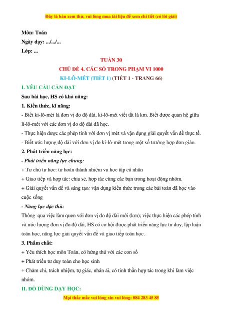 KI-LÔ-MÉT (TIẾT 1) (TIẾT 1 - TRANG 66)