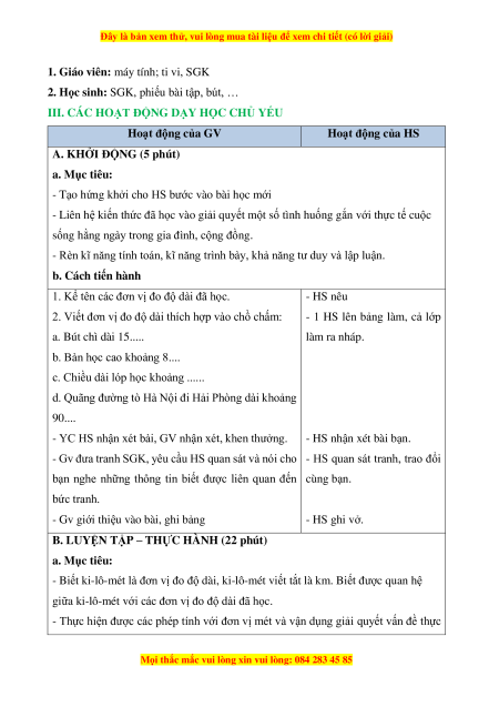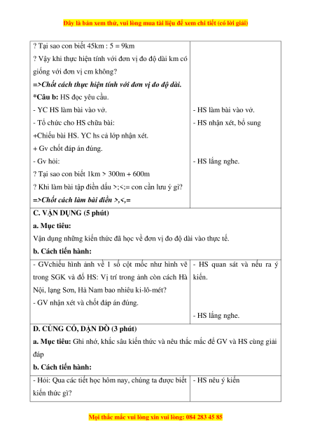 - Biết ki-lô-mét là đơn vị đo độ dài, ki-lô-mét viết tắt là km. Biết được quan hệ