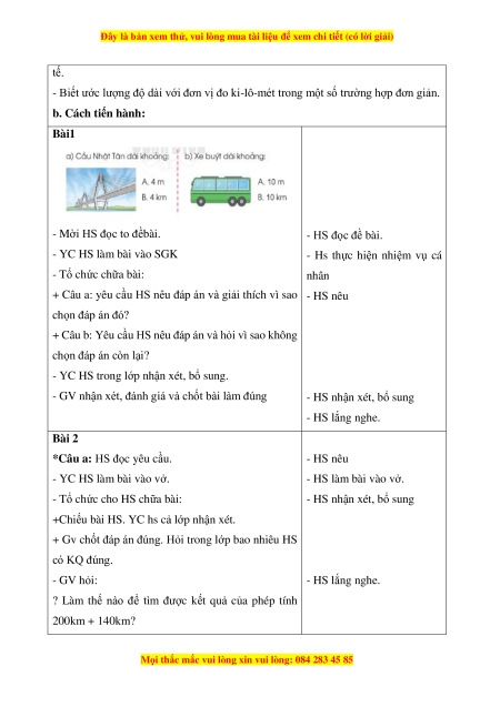 - Biết ước lượng độ dài với đơn vị đo ki-lô-mét trong một số trường hợp đơn giản. b. Cách tiến hành: Bài1