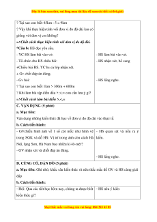 và ước lượng đơn vị đo độ dài, HS có cơ hội được phát triển năng lực tư duy, lập luận