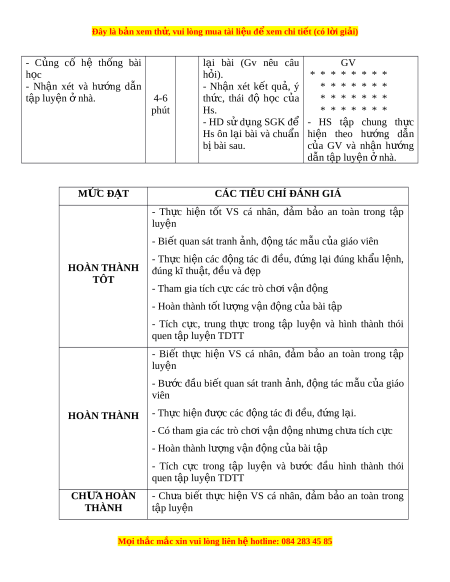 Đây là bản xem th , vu ử i lòng mua tài li u ệ đ xe ể m chi ti t (c ế ó l i ờ gi i ả ) - C ng ủ cố hệ th ng ố bài l i ạ bài (Gv nêu câu GV h c ọ h i ỏ ). * * * * * * * * - Nh n ậ xét và hư ng ớ d n ẫ - Nh n ậ xét k t ế qu , ả ý * * * * * * * t p l ậ uyện nhà. ở 4-6 th c, ứ thái độ h c ọ c a ủ * * * * * * * phút Hs. * * * * * * * - HD sử d ng ụ SGK để - HS t p ậ chung th c ự Hs ôn l i ạ bài và chu n ẩ hiện theo hư ng ớ d n ẫ bị bài sau. c a ủ GV và nh n ậ hư ng ớ dẫn t p l ậ uy n ệ nhà. ở M C Ứ ĐẠT