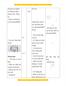 - Trò chơi “ kết bạn” - GV hướng dẫn chơi 16-18’ II. Phần cơ bản: 2 lần - Ôn tập các nội ĐH tập luyện theo tổ dung ĐHĐN đã học: Tổ trưởng cho các Chuyển đội hình bạn luyện tập các nội hàng ngang (hàng dung ĐHĐN theo GV dọc) thành đội hình