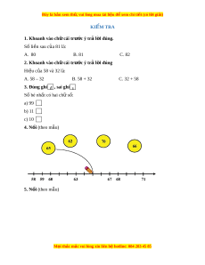 Đây là bản xem th , vu ử i lòng mua tài li u ệ đ xe ể m chi ti t (c ế ó l i ờ gi i ả ) KIỂM TRA 1. Khoanh vào ch cái ữ trư c ớ ý tr l ả i ờ đúng. Số li n s ề au c a ủ 81 là: A. 80 B. 81 C. 82 2. Khoanh vào ch cái ữ trư c ớ ý tr l ả i ờ đúng Hi u c ệ a ủ 58 và 32 là: