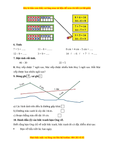 12 – 9 = ….. 3 + 9 = …. 14 l – 6 l + 7 l = …. 7. Đặt tính r i ồ tính. 46 – 30 22 + 5 8. Huy x p ế dư c ợ 7 ngôi sao, Mai x p ế đư c ợ nhi u ề h n ơ Huy 5 ngôi sao. H i ỏ Mai x p đ ế ược bao nhiêu ngôi sao? 9. Đúng ghi , s đ\ ai ghi s\ a) Các hình nh t ả rên đ u l ề à đư ng ờ g p khúc. ấ \ b) Đư ng m ờ àu xanh lá cây dài 14cm. \ c) Đo n ạ th ng m ẳ àu đ dài ỏ 10 cm. \ 10. Đánh d u (