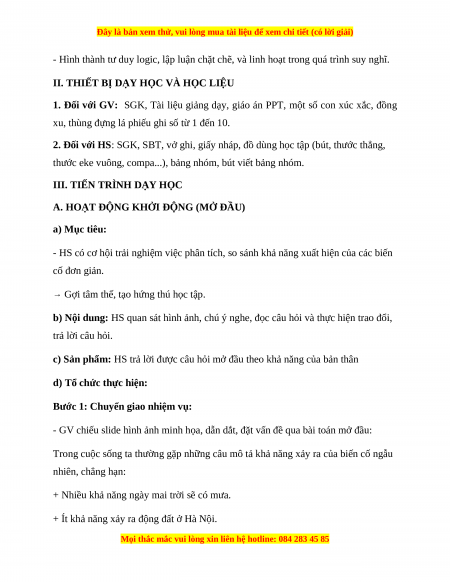 Giáo án Làm quen với biến cố Toán 7 Chân trời sáng tạo
