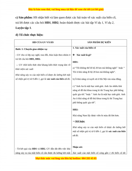 c) Sản phẩm: HS nhận biết và làm quen được các bài toán về xác suất của biến cố,