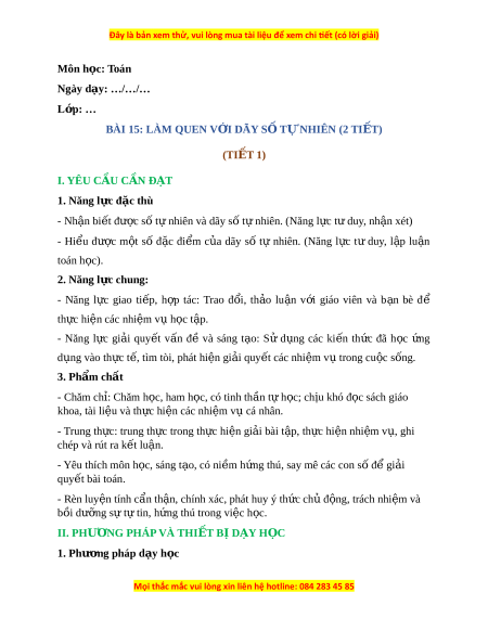 Ngày dạy: …/…/… L p: ớ … BÀI 15: LÀM QUEN V I Ớ DÃY S Ố TỰ NHIÊN (2 TI T Ế ) (TIẾT 1)