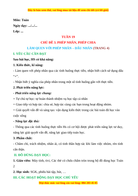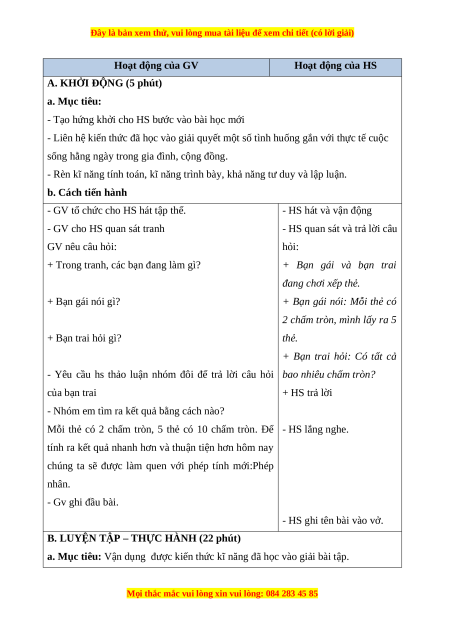 - Làm quen với phép nhân qua các tình huống thực tiễn, nhận biết cách sử dụng dấu