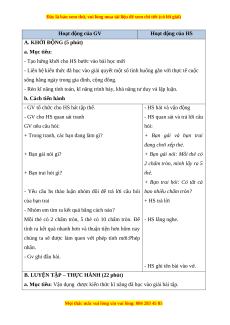 - Rèn kĩ năng tính toán, kĩ năng trình bày, khả năng tư duy và lập luận. b. Cách tiến hành