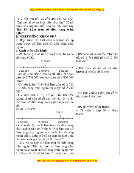 “Bài 13: Làm tròn số đ n ế hàng trăm nghìn”. B. HOẠT Đ N Ộ G KHÁM PHÁ a. M c ụ tiêu: HS bi t ế cách làm tròn s , ố áp d ng ụ đư c ợ để làm tròn số đ n ế hàng trăm nghìn. b. Cách th c ứ ti n hàn ế h - GV chi u l ế i ạ hình nh ả