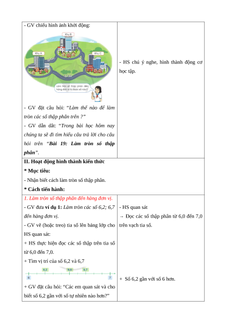 - Nhận biết cách làm tròn số thập phân. * Cách tiến hành: