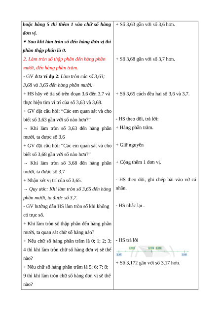 + HS hãy vẽ tia số trên đoạn 3,6 đến 3,7 và + Số 3,65 cách đều hai số 3,6 và 3,7.