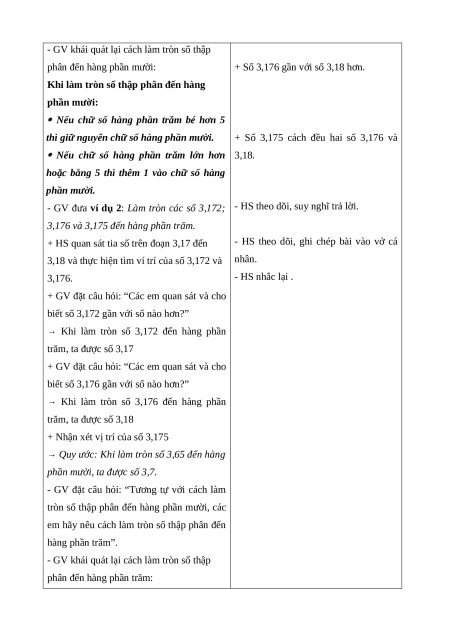 - Vận dụng giải quyết các vấn đề đơn giản liên quan đến làm tròn số thập phân.