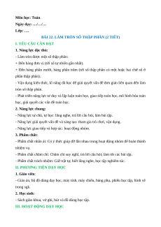 BÀI 22. LÀM TRÒN SỐ THẬP PHÂN (2 TIẾT)