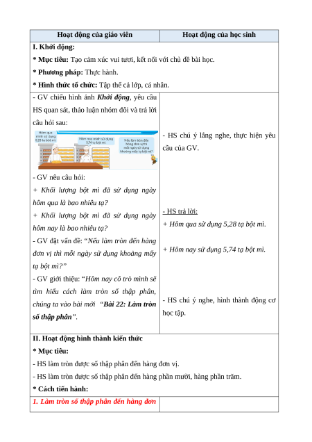 - HS làm tròn được số thập phân đến hàng phần mười, hàng phần trăm. * Cách tiến hành: