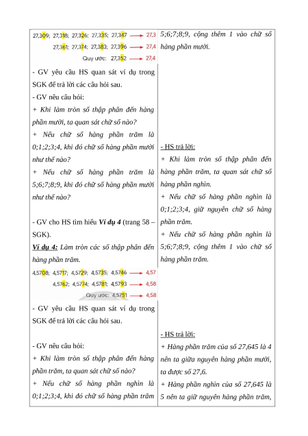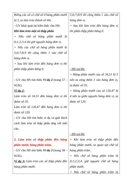 - Vận dụng kiến thức, kĩ năng đã học để giải quyết vấn đề đơn giản liên quan đến làm tròn số thập phân.