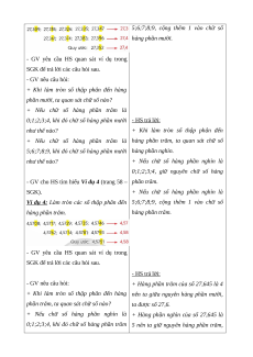 hàng phần mười, ta quan sát chữ số