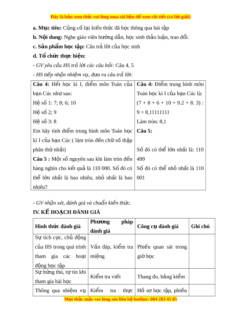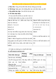 ế hàng quy tròn theo yêu c u ầ - Th c ự hiện được ư c ớ lư ng k ợ t ế qu c ả a các ủ phép tính trên các s t ố h p phân ậ - Gi i ả quy t ế đư c ợ m t ộ số v n ấ đ ề th c ự ti n ễ g n ắ v i ớ làm tròn s ố th p ậ phân và ư c l ớ ư ng ợ k t ế qu c ả a ủ các phép tính trên s t ố h p ậ phân 2. Năng l c ự a. Năng l c ự chung: Năng l c ự tư duy và l p ậ lu n ậ toán h c; ọ năng l c ự mô hình hóa toán h c; ọ năng l c ự gi i ả quy t ế v n ấ đề toán h c; ọ năng l c ự giao ti p ế toán h c; ọ năng l c ự s d ử ng ụ công c , ph ụ ư ng ơ ti n ệ h c ọ toán - Năng l c ự chú tr ng: ọ tư duy và l p ậ lu n ậ toán h c, ọ gi i ả quy t ế v n ấ đề toán h c, gi ọ ao ti p t ế oán h c, ọ s d ử ng ụ công c , ph ụ ư ng ơ ti n t ệ oán h c ọ 3. Ph m ẩ chất Rèn luy n ệ thói quen tự h c, ọ ý th c ứ hoàn thành nhi m ệ vụ h c ọ t p, ậ b i ồ dư ng ỡ h ng t ứ hú h c t ọ p ậ cho HS.