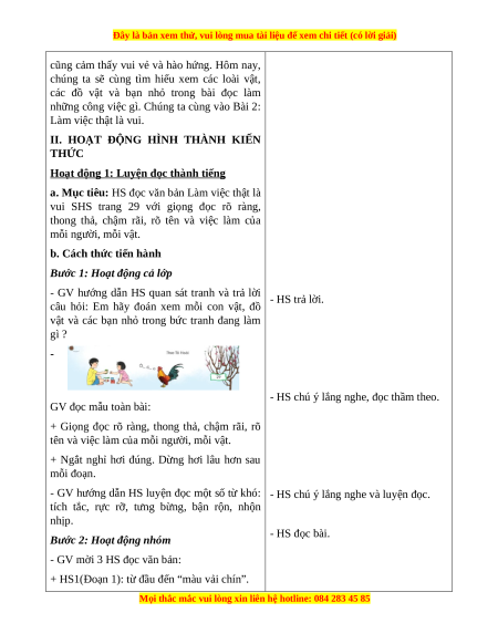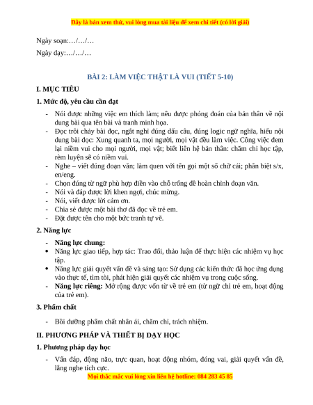 BÀI 2: LÀM VIỆC THẬT LÀ VUI (TIẾT 5-10) I. MỤC TIÊU