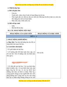 I. HOẠT ĐỘNG KHỞI ĐỘNG