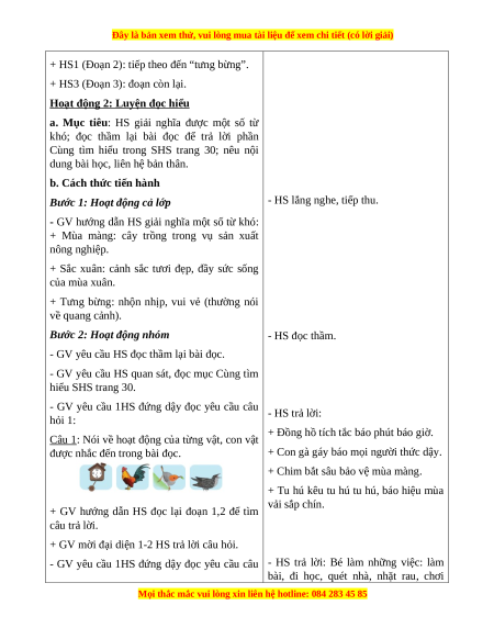 - HS chú ý lắng nghe, đọc thầm theo. GV đọc mẫu toàn bài: