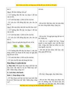 - GV yêu cầu 1HS đứng dậy đọc yêu cầu câu - HS trả lời: Bé làm những việc: làm