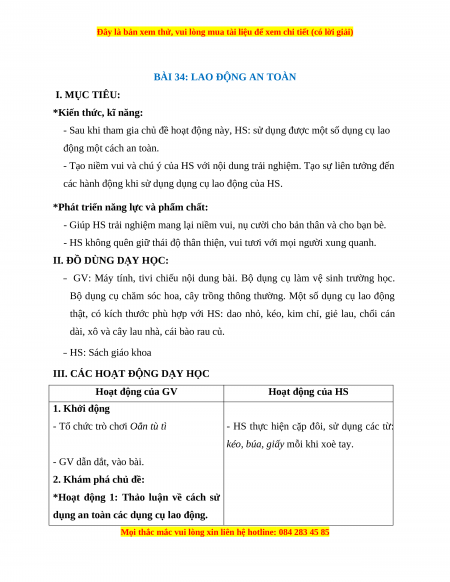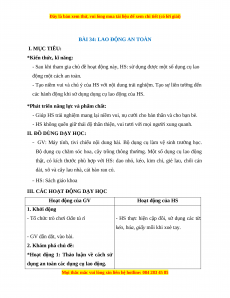 BÀI 34: LAO ĐỘNG AN TOÀN I. MỤC TIÊU: