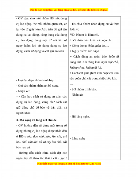 - Sau khi tham gia chủ đề hoạt động này, HS: sử dụng được một số dụng cụ lao động một cách an toàn.