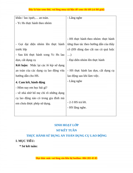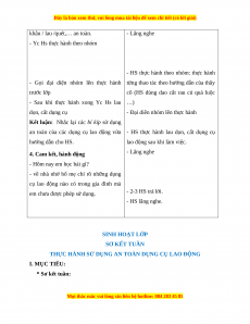 THỰC HÀNH SỬ DỤNG AN TOÀN DỤNG CỤ LAO ĐỘNG I. MỤC TIÊU: * Sơ kết tuần: