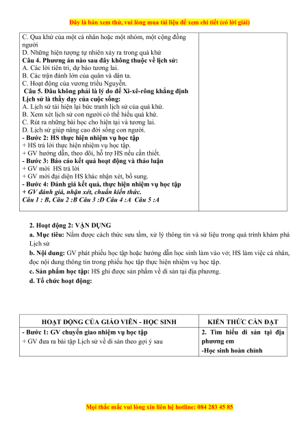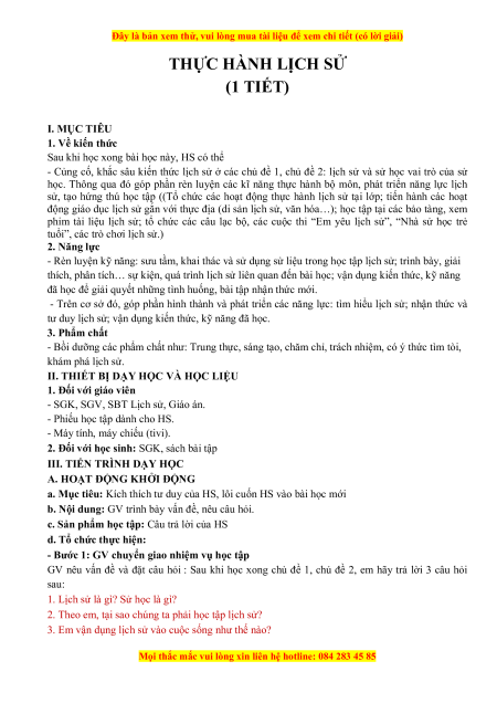 Đây là bản xem thử, vui lòng mua tài liệu để xem chi tiết (có lời giải) THỰC HÀNH LỊCH SỬ (1 TIẾT) I. MỤC TIÊU 1. Về kiến thức