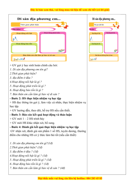 + GV đưa ra bài tập Lịch sử về di sản theo gợi ý sau