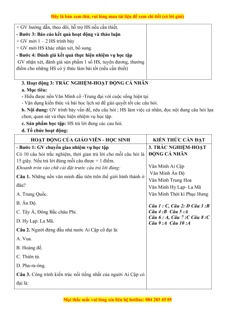 Đây là bản xem thử, vui lòng mua tài liệu để xem chi tiết (có lời giải) THỰC HÀNH LỊCH SỬ (1 TIẾT) I. MỤC TIÊU 1. Về kiến thức