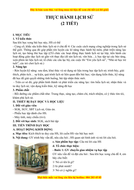 Đây là bản xem thử, vui lòng mua tài liệu để xem chi tiết (có lời giải) THỰC HÀNH LỊCH SỬ (2 TIẾT) I. MỤC TIÊU 1. Về kiến thức