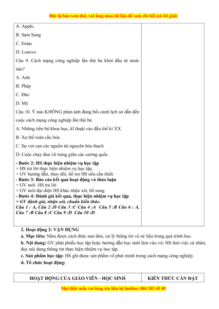 Đây là bản xem thử, vui lòng mua tài liệu để xem chi tiết (có lời giải) A. Apple. B. Sam Sung C. Eniac D. Lenovo