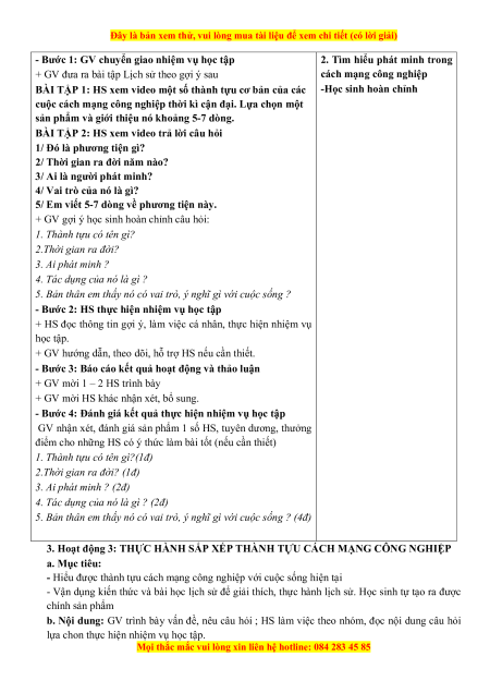 3. Hoạt động 3: THỰC HÀNH SẮP XẾP THÀNH TỰU CÁCH MẠNG CÔNG NGHIỆP