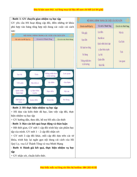 - Hệ thống hóa những nội dung kiến thức cơ bản đã học trong chủ đề 5: Một số cải cách lớn
