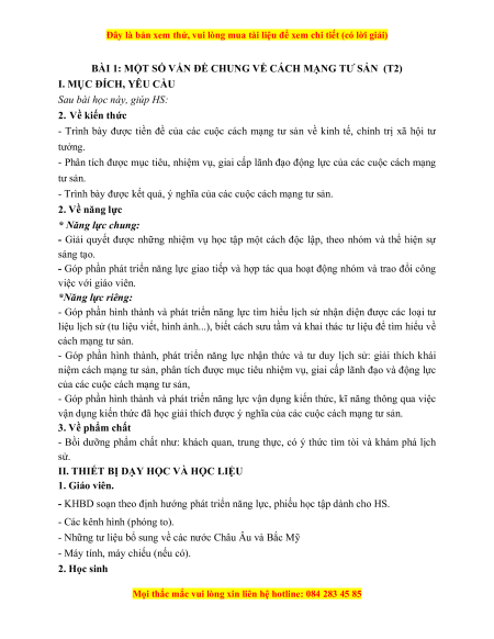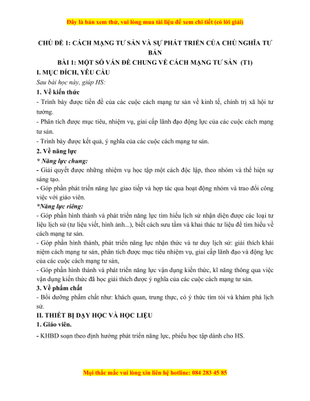 BÀI 1: MỘT SỐ VẤN ĐỀ CHUNG VỀ CÁCH MẠNG TƯ SẢN (T1)