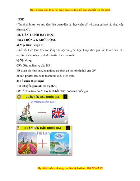 III. TIẾN TRÌNH DẠY HỌC