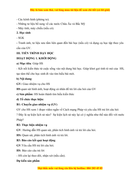 GV cho HS xem 1 đoạn video ngắn về Cách mạng Pháp và yêu cầu HS trả lời câu hỏi