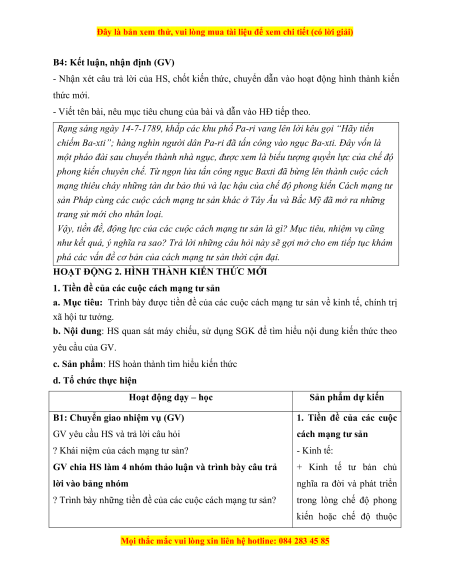 CHỦ ĐỀ 1: CÁCH MẠNG TƯ SẢN VÀ SỰ PHÁT TRIỂN CỦA CHỦ NGHĨA TƯ BẢN