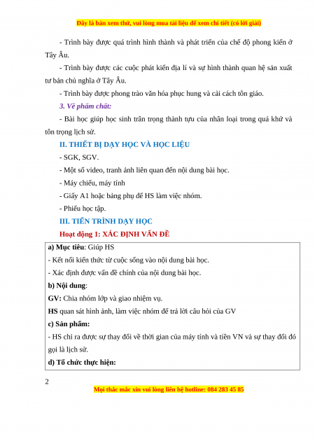 - Trình bày được quá trình hình thành và phát triển của chế độ phong kiến ở Tây Âu.