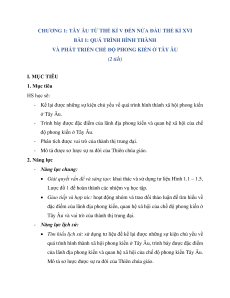 VÀ PHÁT TRIỂN CHẾ ĐỘ PHONG KIẾN Ở TÂY ÂU (2 tiết) I. MỤC TIÊU 1. Mục tiêu HS học sẽ: