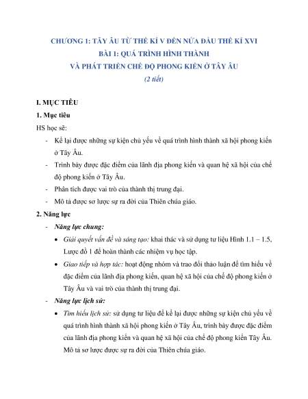 CHƯƠNG 1: TÂY ÂU TỪ THẾ KỈ V ĐẾN NỬA ĐẦU THẾ KỈ XVI