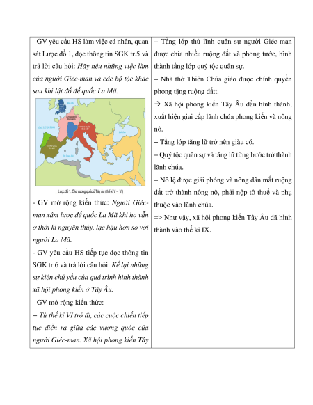 Hoạt động 1: Tìm hiểu về quá trình hình thành xã hội phong kiến ở Tây Âu
