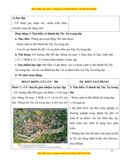 chế độ phong kiến Tây Âu; Phân tích được vai trò của thành thị trung đại;
