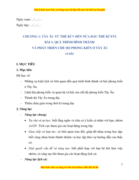 CHƯƠNG 1: TÂY ÂU TỪ THẾ KỈ V ĐẾN NỬA ĐẦU THẾ KỈ XVI .............. 2