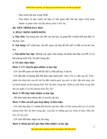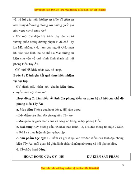VÀ PHÁT TRIỂN CHẾ ĐỘ PHONG KIẾN Ở TÂY ÂU (4 tiết) I. MỤC TIÊU 1. Mục tiêu HS học về: