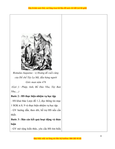- GV dẫn dắt và hướng dẫn HS thảo luận nhóm đôi: Năm 476, La Mã sụp đổ. Trên