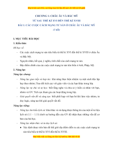 BÀI 1: CÁC CUỘC CÁCH MẠNG TƯ SẢN Ở CHÂU ÂU VÀ BẮC MỸ (3 tiết)
